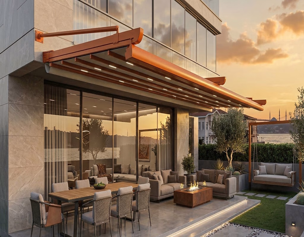 Form Branda tarafından üretilen 4×2 ayaksız pergola tente sistemi, duvara montajlı özel tasarımı sayesinde zeminde ayak olmadan maksimum kullanım alanı sunar. Modern mimariye uyum sağlayan bu sistem, özellikle dar alanlar, teraslar, balkonlar ve kafe önleri için estetik ve fonksiyonel bir çözümdür.