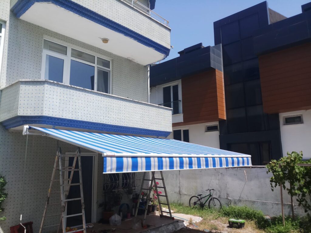 350 cm Genişlik 150 CM Açılım Mafsallı Tente Akrilik Kumaşlı