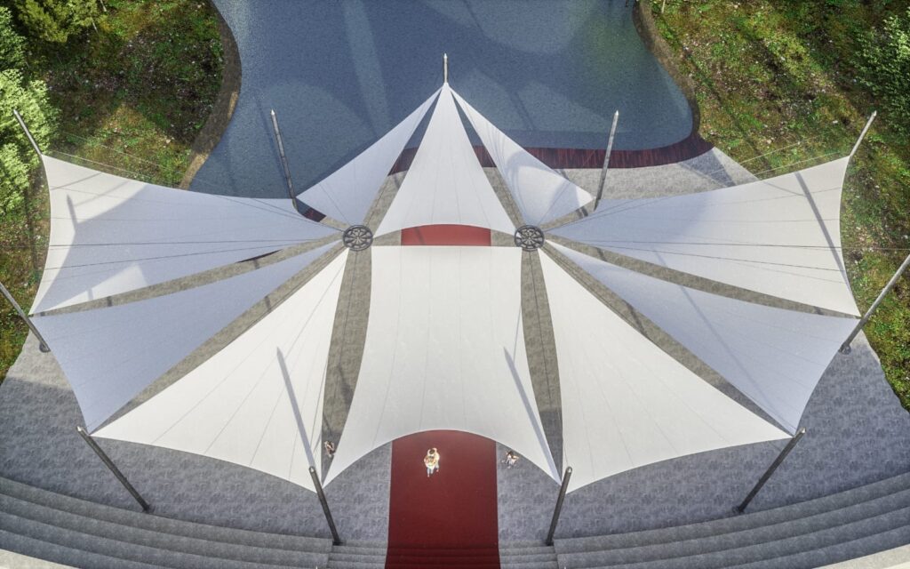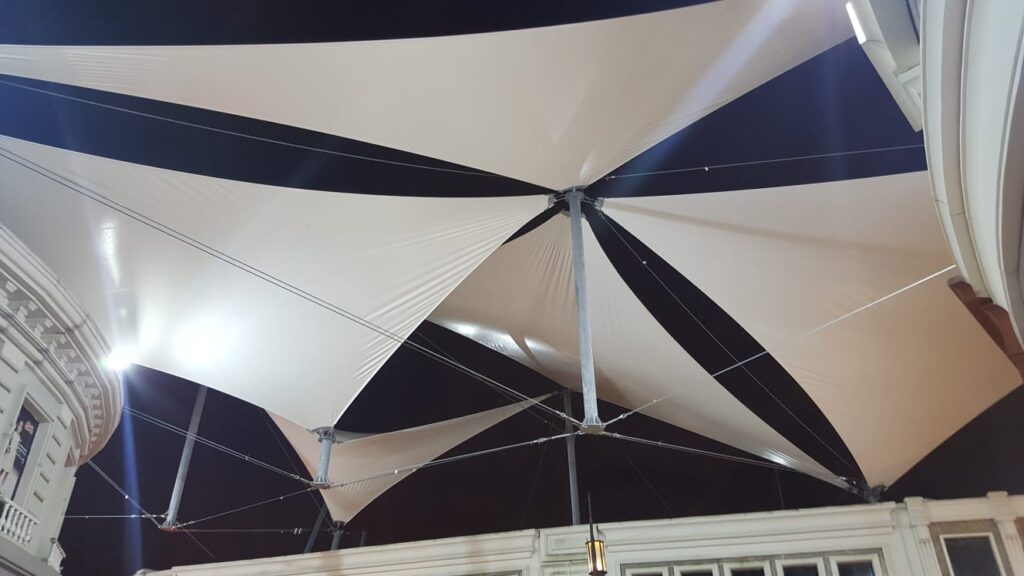 Yüksek mukavemetli çelik taşıyıcı sistemler üzerine gerilen özel membran brandalar sayesinde yağmur, güneş ve rüzgara karşı uzun ömürlü koruma sağlar. Aynı zamanda modern mimari tasarımı sayesinde bulunduğu mekâna estetik bir görünüm kazandırır.